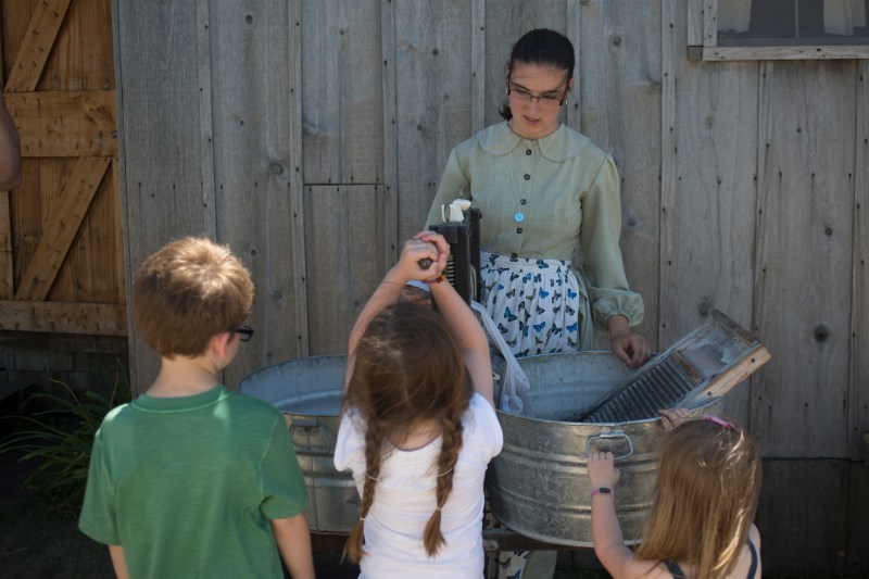 The sod houses had their challenges, but looked surprisingly more livable than I had imagined. It was a hot sunny day when we visited, but the prairie winds kept you feeling cool and inside the sod houses with their packed dirt floors, shade, and open windows it was even cooler. We were the only ones visiting at the time we were there, so we could take our time checking everything out at our leisure. Though this site does not operate as a bed and breakfast anymore(what a neat experience that would have been!), there are bonnets and aprons to help you get into character during your visit and to snap a few fun photos. The homes are furnished with period items to try out and explore as well. The kids loved looking through the braille books like Mary’s, sitting at the tables, trying out the beds, and climbing ladders to look in lofts. One of their favorites was encountering the free roaming cats and kittens that have made the houses their homes.