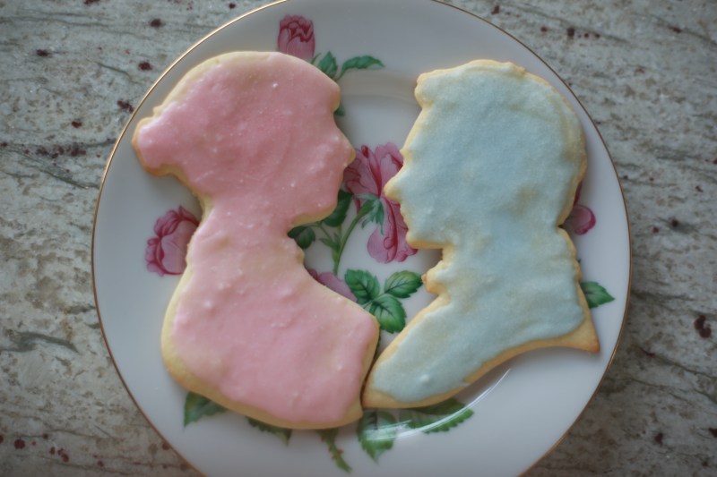 After all this tea and partying we had to try it ourselves at home! The kids each got a little toy tea set of their own to play with and I got my grandmother’s tea set out of storage so that I could play too. 🙂 We prepared by making some yummy cookies. I got 3D printed cookie cutters of Elizabeth Bennet and Mr. Darcy, and also 3D printed cookie cutters of my kids silhouettes to make cookies with(links on my Pinterest page here). We decorated them and baked scones and got some Jane Austen inspired tea by Steep Show Teas(Miss Bennet’s English Pear black tea and Jane’s Regency Rose green tea). We didn’t make tea sandwiches like I had originally planned and cut them out with cookie cutters, sigh. In the end it was hot dogs. You win some and lose some I guess. 😉 Next time(and there will be a next time)! The kids at least tried the tea(not without some lumps of sugar of course), but in the end drank mostly apple juice in their tea cups. We had a fun time and definitely plan to make this more of a regular activity. It’s kind of amazing how a little nice china and beautiful plating and food can bring out the civility in your kids at the dinner table. I’d do this more often just for that!