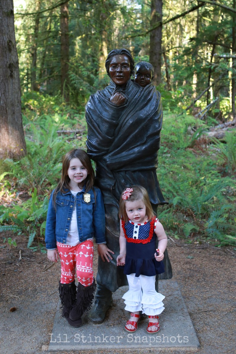 Part of the fun of learning about Sacagawea was taking a drive up to Astoria, OR to visit Fort Clatsop, Lewis and Clark’s final stop on their trek West. It was such an awesome experience to take a step back in time and to walk where Sacagawea and Lewis and Clark walked, and walk inside rooms where they slept, worked, and ate. Fort Clatsop is a U.S. National Historical Park, and the rangers there are some awesome people who really inspiring! They helped the kids learn about Fort Clatsop and the natural surroundings. The kids completed enough activities to be sworn in as junior rangers and received a patch, certificate, and badge in commemoration of the event!